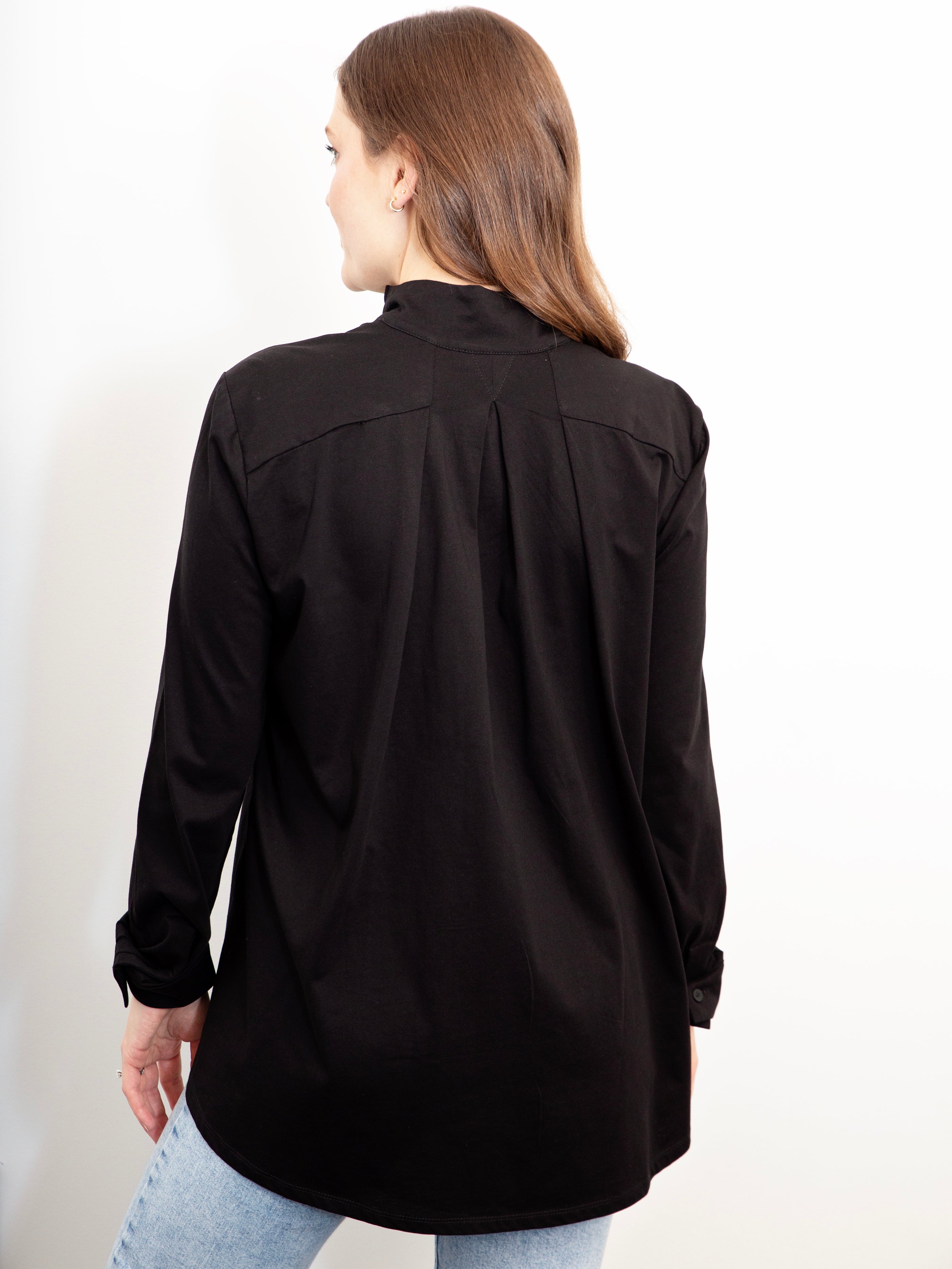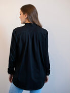 The Placket Front Shirt by White on Black is a modern take on the classic shirt, designed to bring effortless polish to your everyday wardrobe. With its clean lines and timeless contrast, this women’s button-up shirt transitions seamlessly from work to weekend styling. Crafted in a lightweight fabrication, it softly skims the body for a relaxed yet refined silhouette. The structured collar and covered placket create a streamlined, minimal finish, elevating this piece beyond a standard shirt. It’s an easy layering option that works beautifully across seasons. A versatile shirt for work or casual wear, it pairs effortlessly with tailored trousers, denim, or skirts for a look that feels considered without effort.