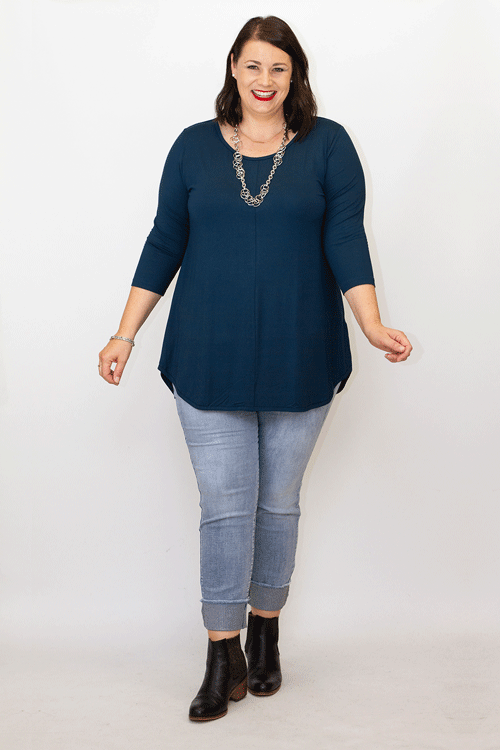 The Project is an Understudy favourite. Featuring a scoop neck, and an A line fit, this style features a fitted bodice and rounded hem shape. It offers a hi lo hem and vertical seams at centre front and back. Made from Understudy's signature super soft cashmere touch viscose knit, this style is perfect for layering or on its own. Designed, cut, and sewn in New Zealand as part of Understudy's efforts to support New Zealand manufacturing and local business. The Project in Victorian is a colourway EXCLUSIVE TO MAGAZINE*