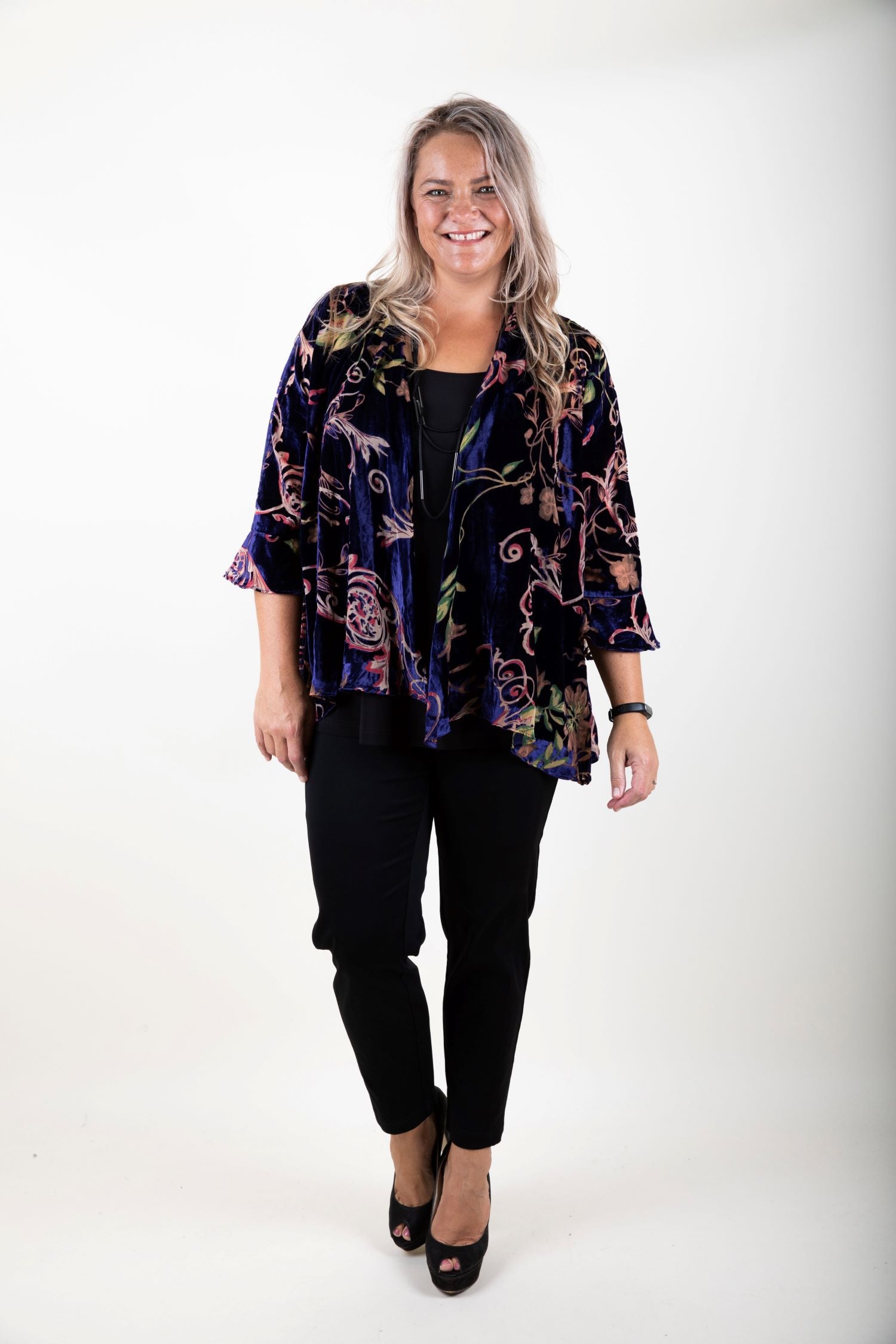 Crafted from the most exquisite velvet burnout featuring rich, opulent shades - we’ve fallen for the Pageantry Flounce Jacket by the best selling Swish label. This edge to edge design lets the print be the star! Offering swing shaping and finished with a fluted sleeve, team with a simple slip dress or singlet and slim pant at your next big event!