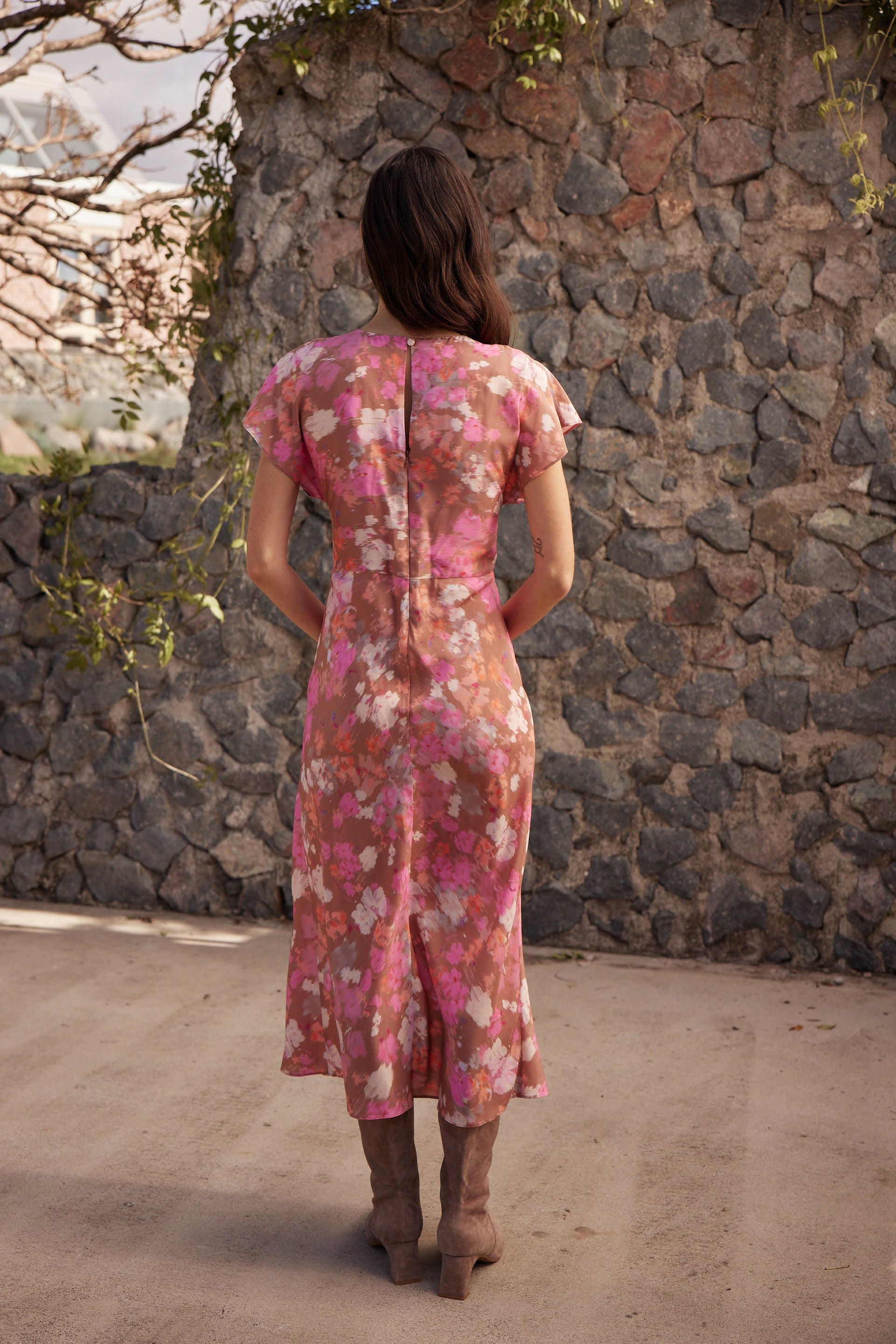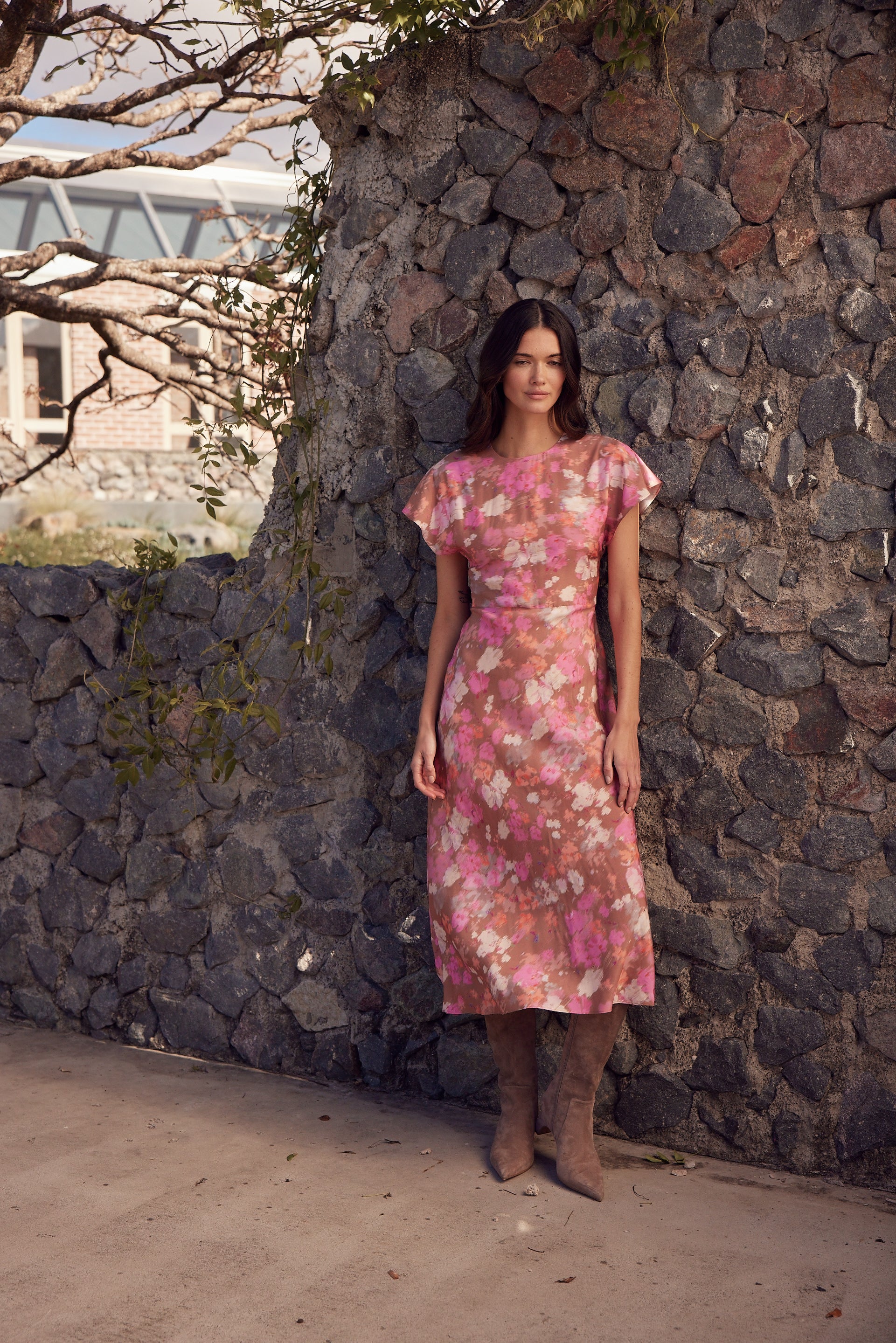 The Proxy Dress by Zoe Kratzmann is the perfect transitional piece, offering fluid movement with modern sophistication. Crafted from a printed viscose-silk blend, it features a round neckline and bias-cut skirt for a flattering drape.