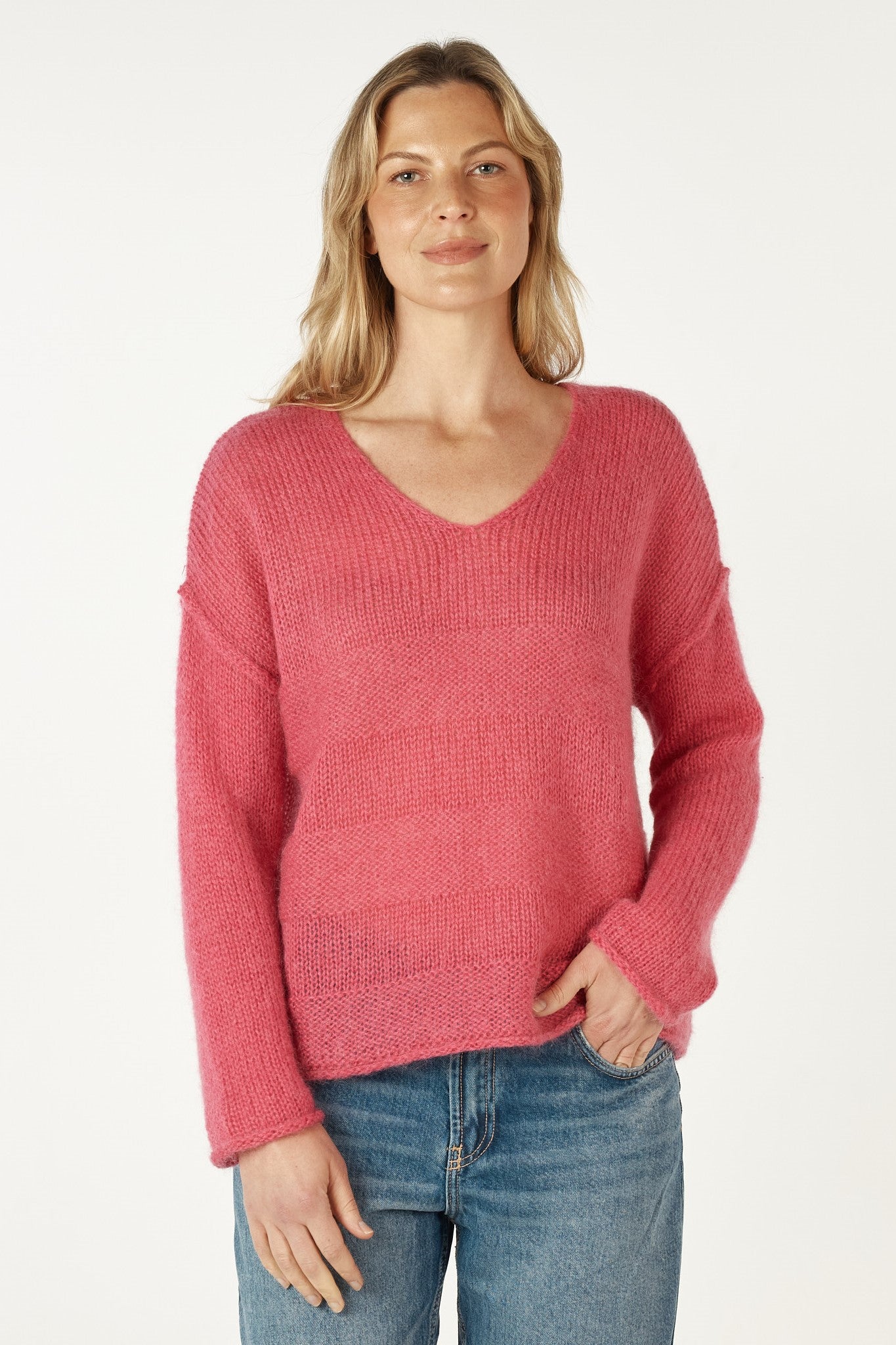The Zaket and Plover Mohair V is stunningly soft and beautiful to wear. Cut in 2 stunning colourways, this style features alternating stitching and a mid v neck. Ideal as a light outer layer, made to cherish for years to come!