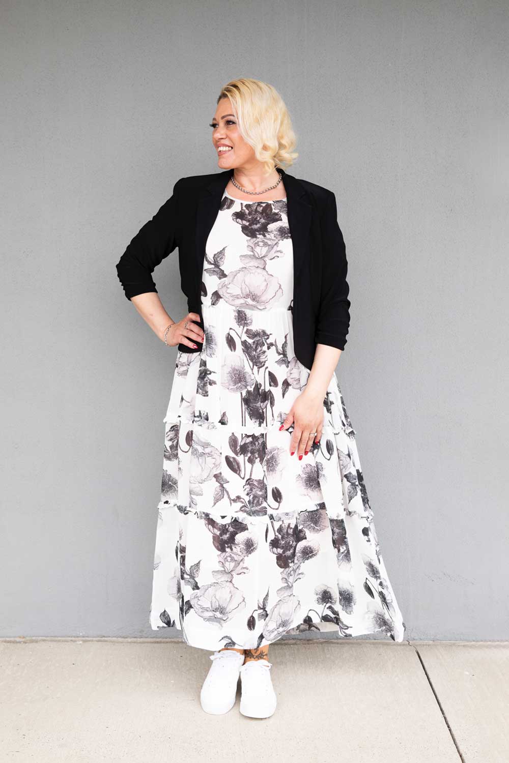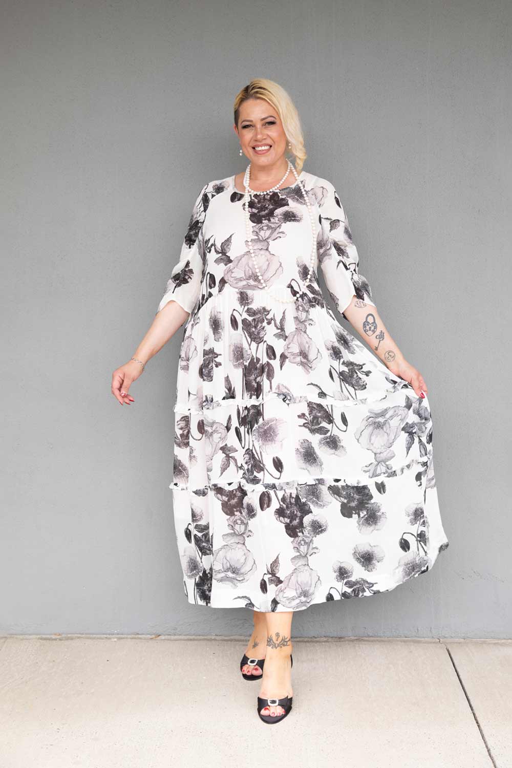 Made in New Zealand and created exclusively for Magazine, the Hope Dress is crafted from an exclusive sophisticated floral viscose print. The dress fits beautifully, with an empire line, ruched sleeve detail and delicate tiers that cascade over the body. A gorgeous style for work or wedding, finish with the matching Blanc Ava Slip.
