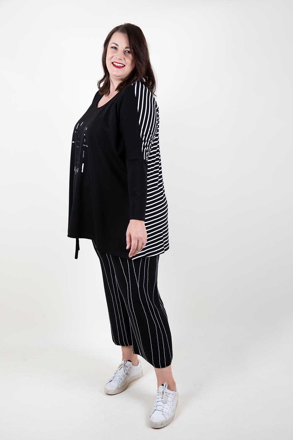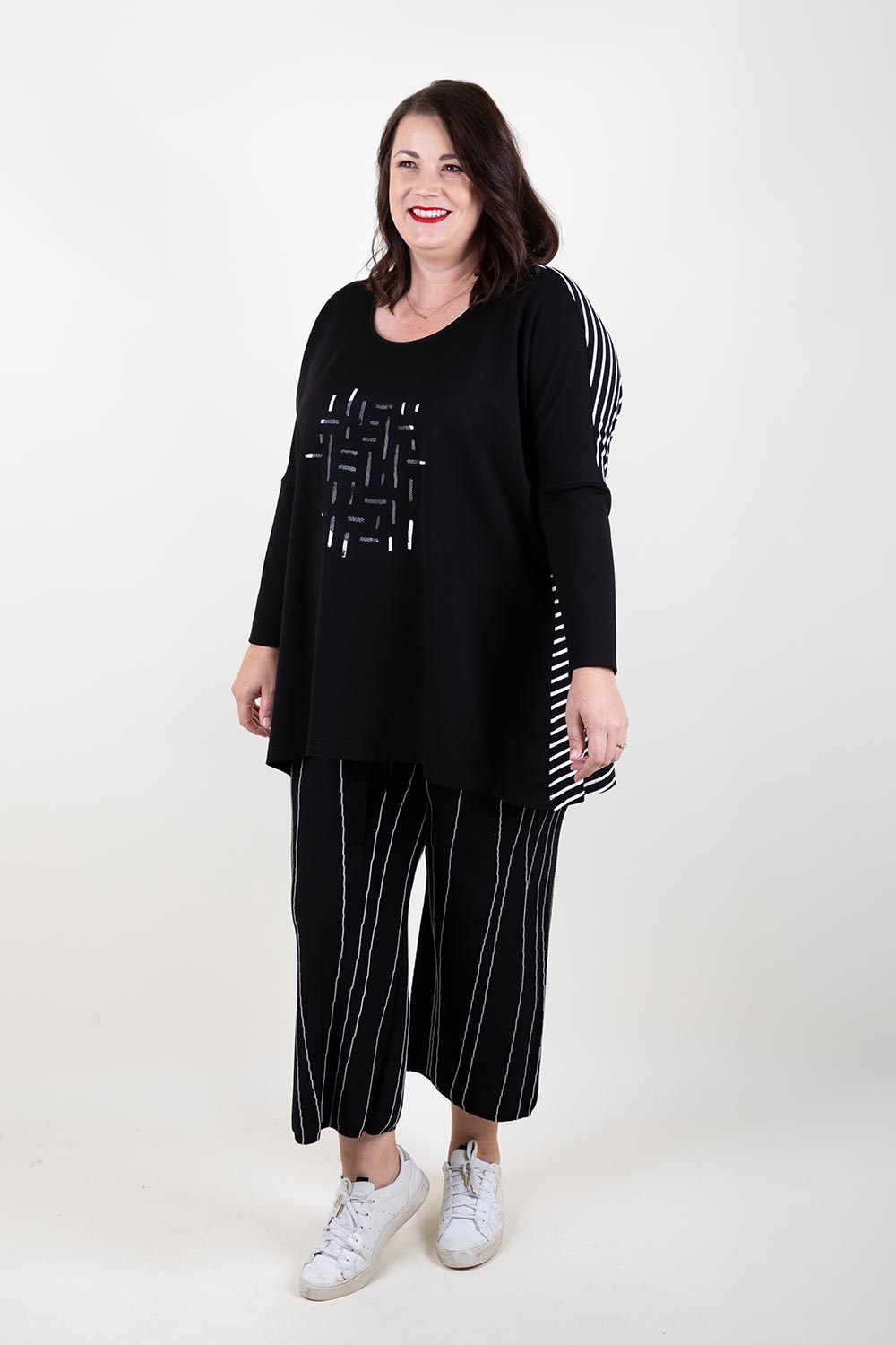 Proudly made in New Zealand and exclusively created for Magazine, the Circle Top by Blanc is ideal for everyday ! This is every day dressing at its best - with so many details to love here from the contrast stripe detail through the back, circle mesh panel on the front and quirky stylised screen print.