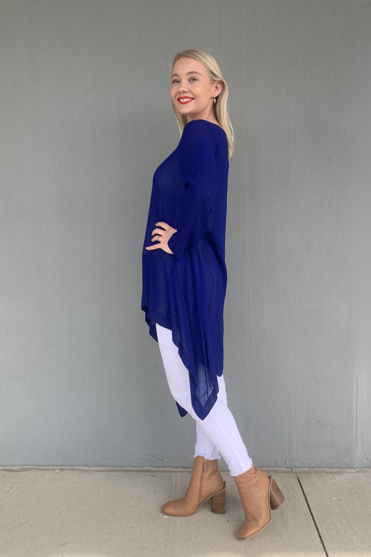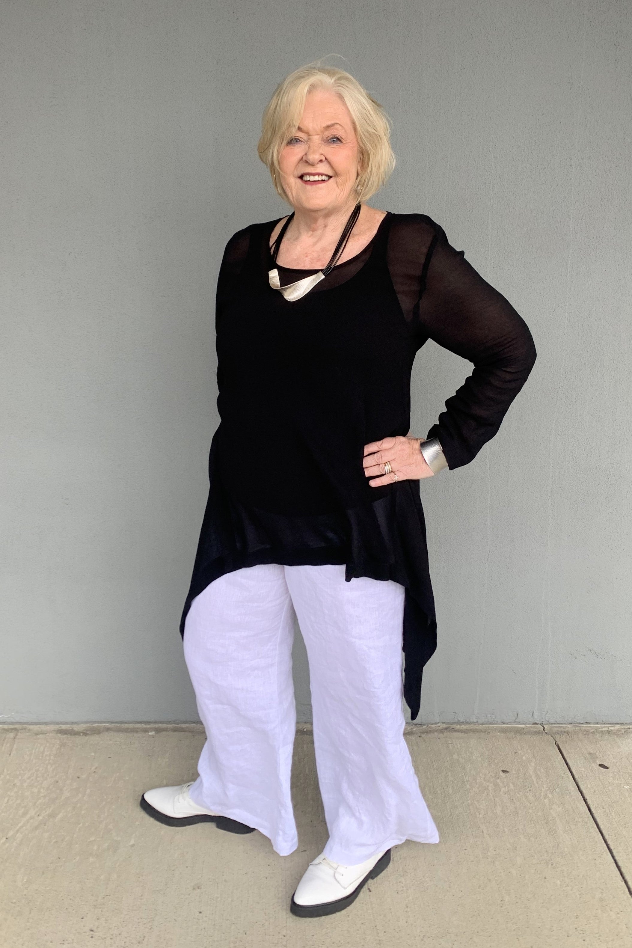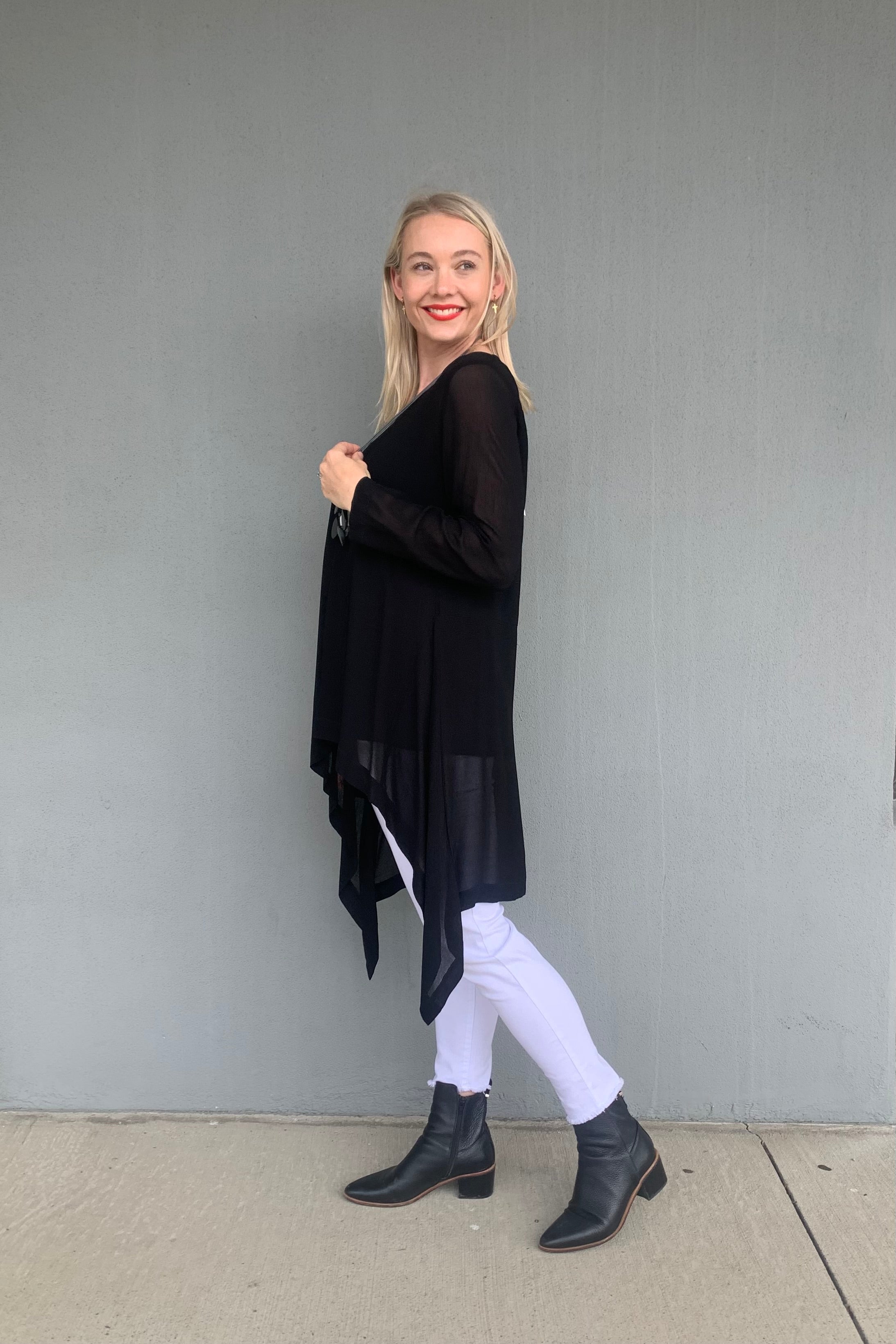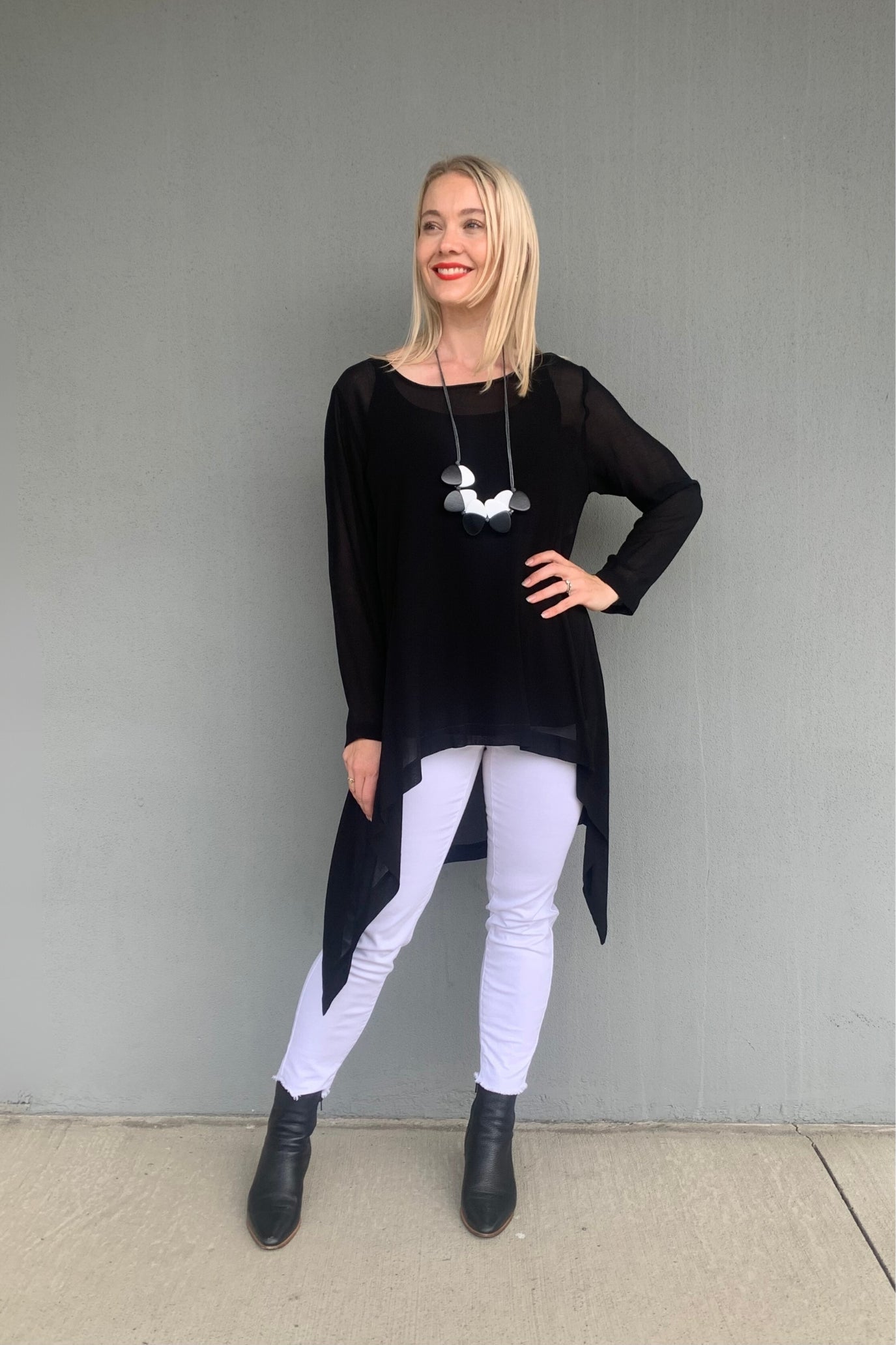 Proudly made in New Zealand, Blanc's soft and diaphanous Ophelia Top is offered in the classic Black and striking Cobalt colourways. Cut in semi sheer viscose, we love this easy to wear top with its hi lo hem, angled seams and swing shaping.