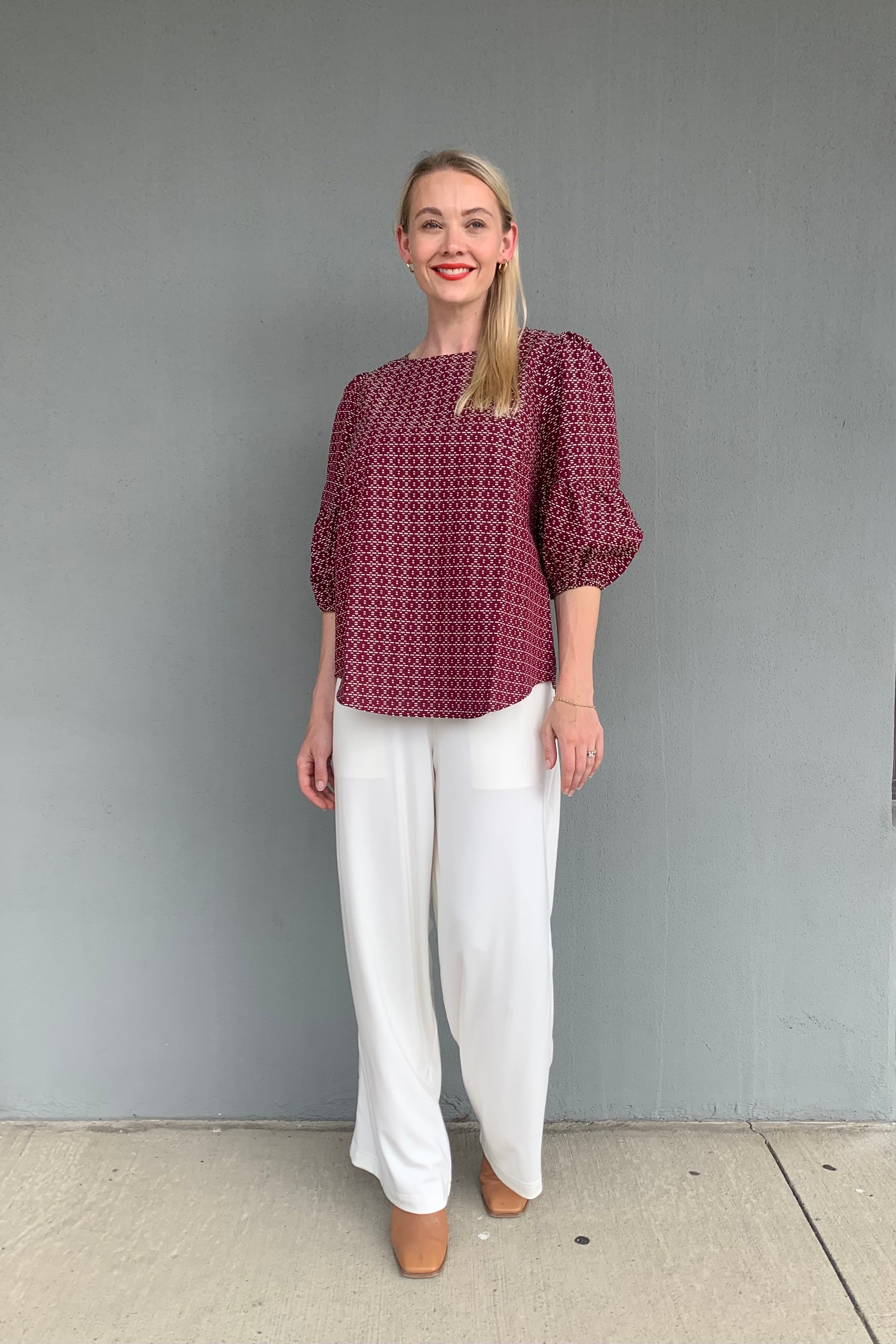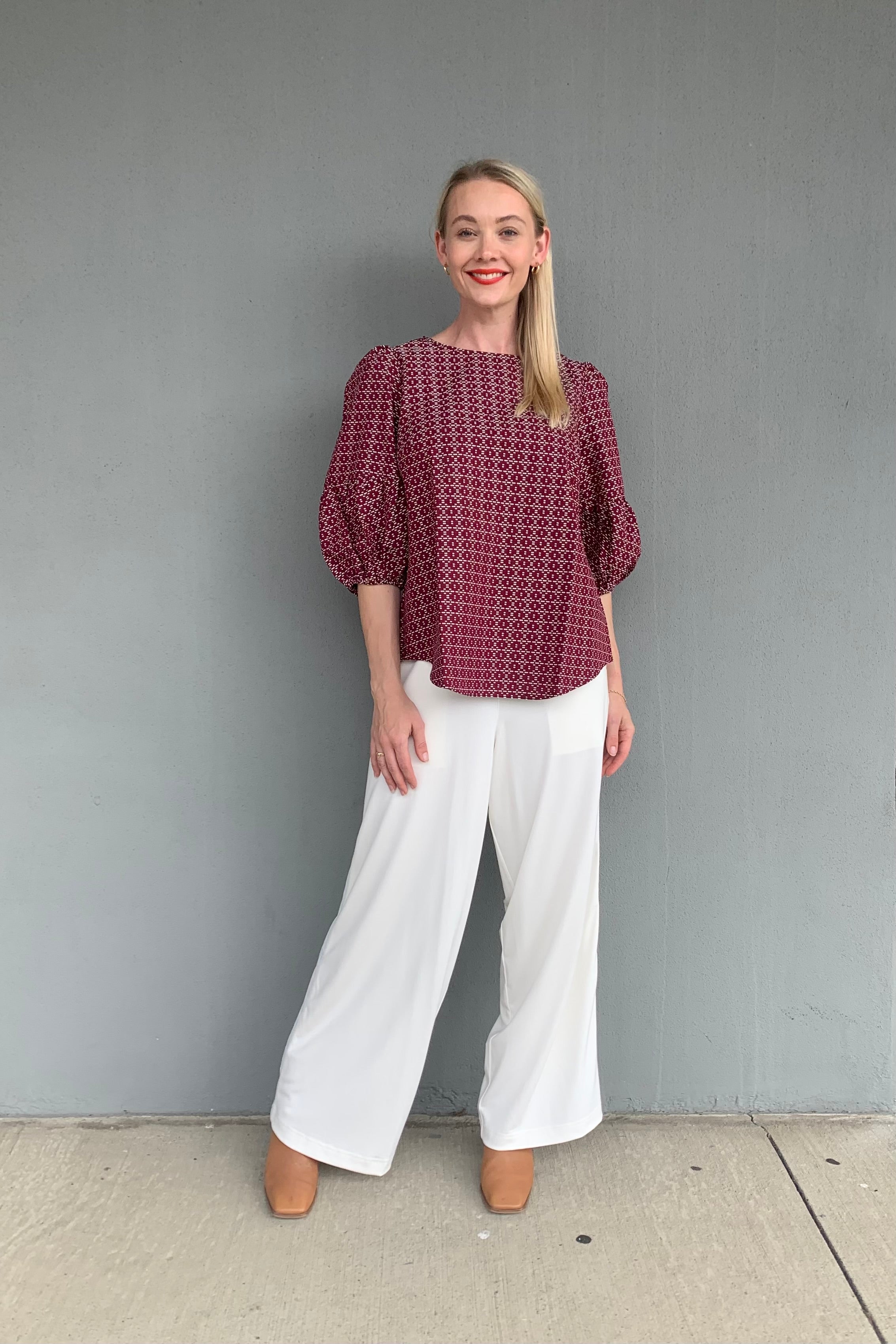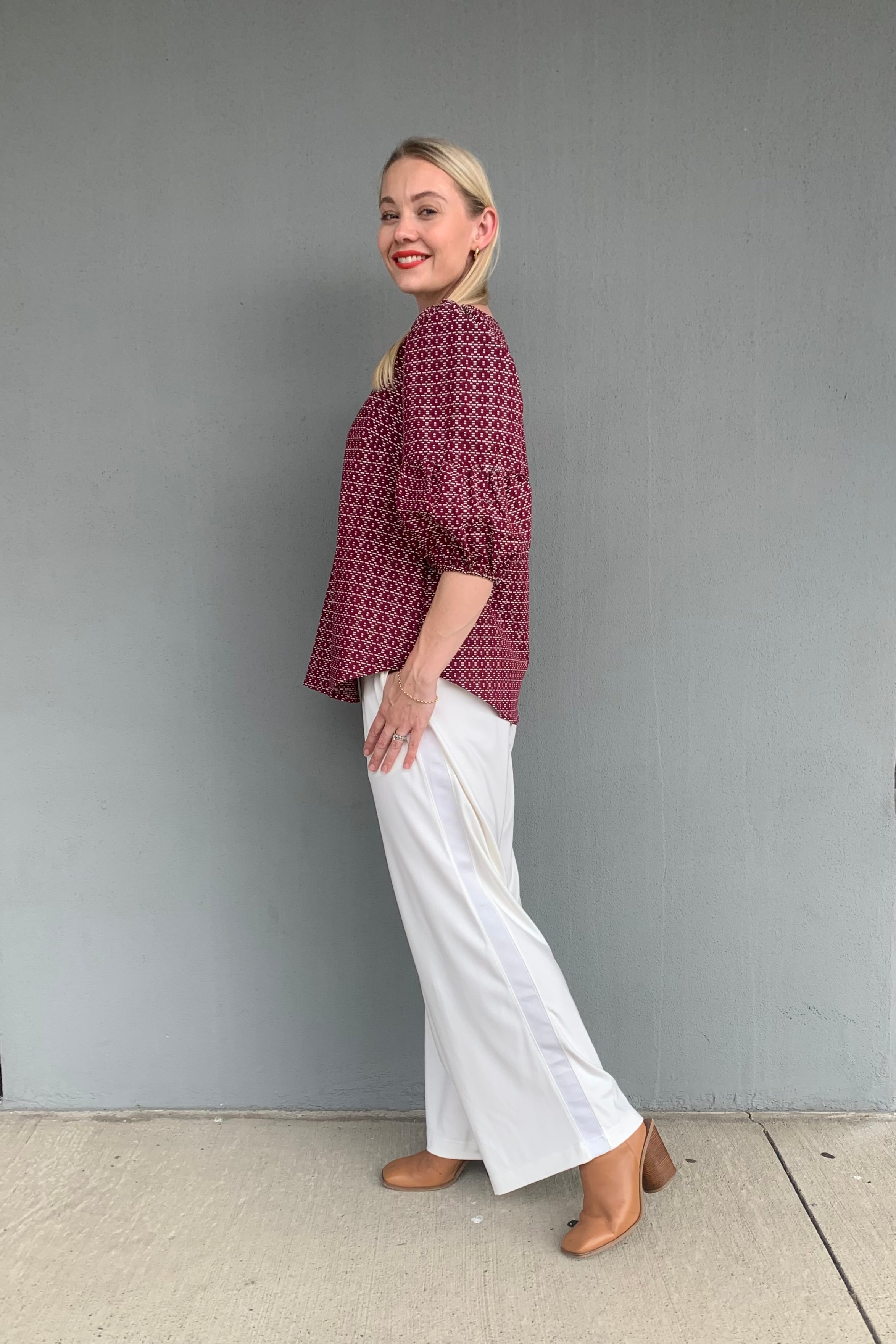 Cut in a soft drapey ponti knit, Dref by D’s Ara Pant are a statement in winter style. High through the rise, this wide-leg design features a wide waistband that is designed to hold the tummy in. Offered in Black and Winter White, the extra long leg length is fabulous on taller frames, with sporty grosgrain tape down the leg providing the ultimate finishing touch.