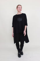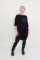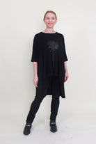 Elevate your everyday style with the Flow Top by Raven! Made from soft, flowy viscose fabric, this high-low silhouette drapes beautifully and moves with you. Featuring a relaxed half sleeve and a striking dahlia screenprint detail, it’s an effortless piece that pairs perfectly with everything from tailored trousers to weekend denim.