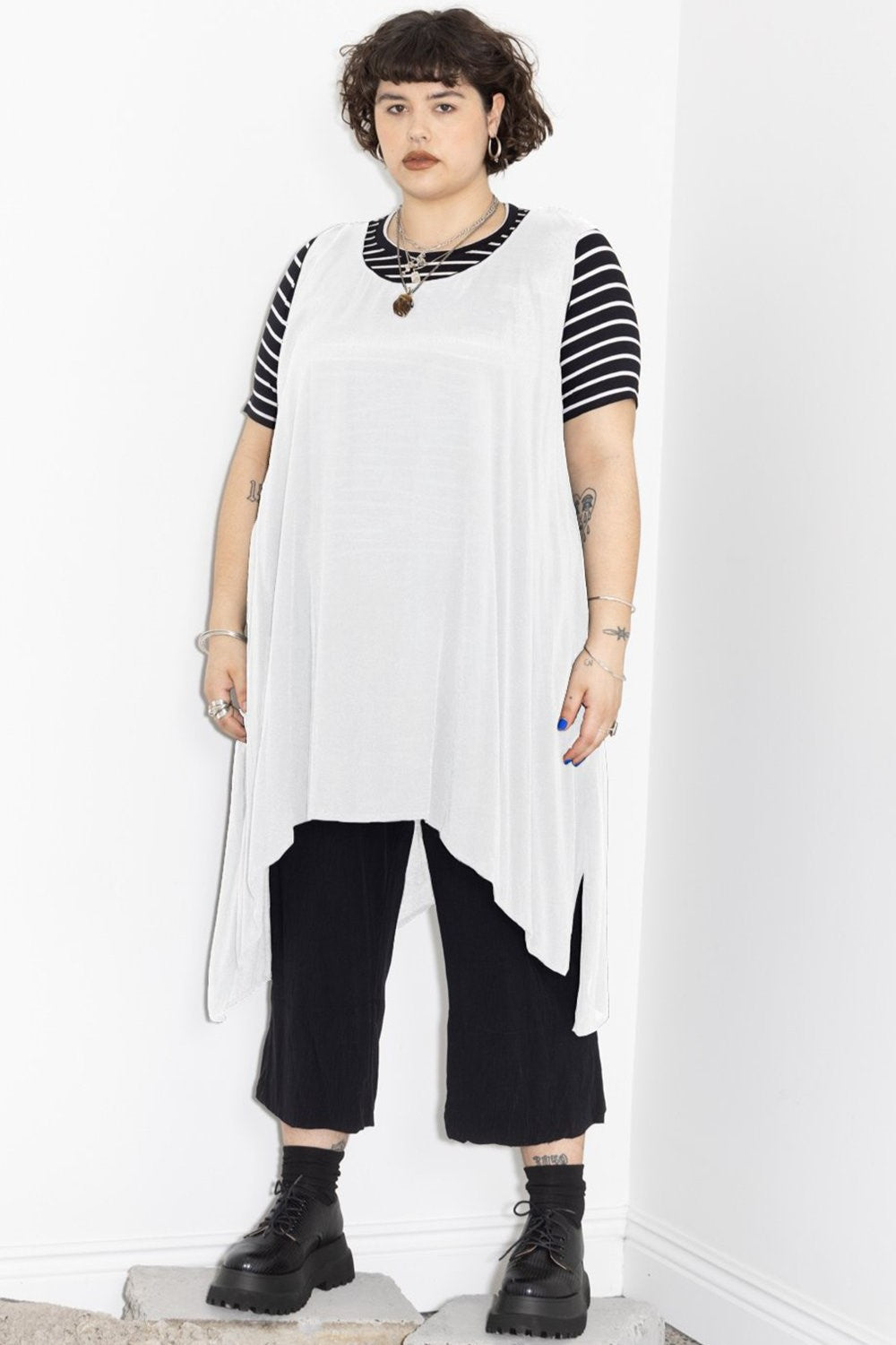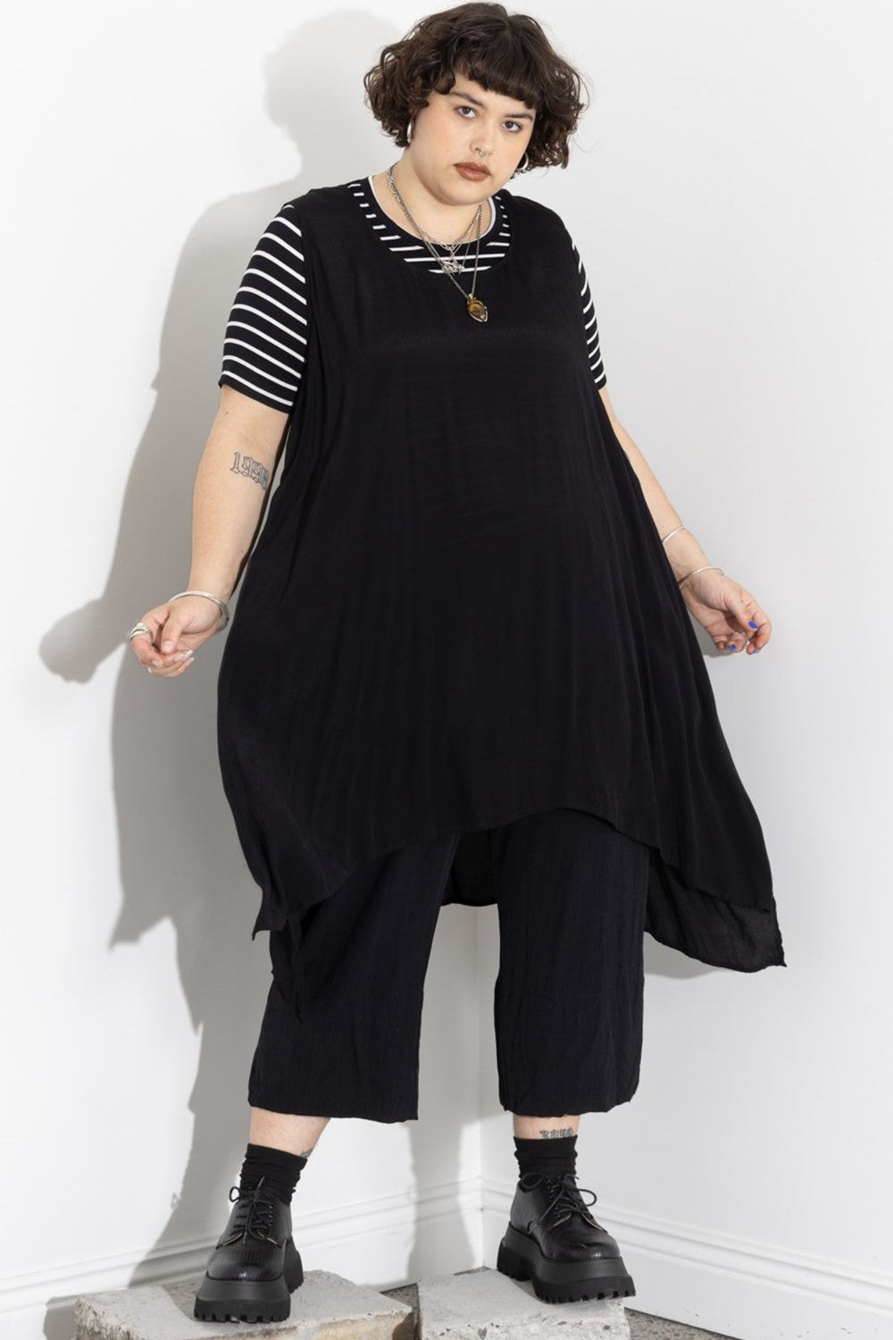 Just like it says on the ticket, Lala’s Layering Tunic is perfect for layering! Offered in Black and White, and cut in soft handle viscose, this design is versatile, elegant and lovely to wear. This sleeveless style is finished with a softly pointed hem and can be worn on its own, or layered under so many pieces to add drama and extra length!