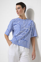 The Spliced Stripe Tee by Marco Polo brings a bold twist to everyday style with its striking graphic stripe pattern. Featuring a classic crew neckline, half sleeves, and a comfortable relaxed fit, it’s the perfect blend of ease and impact. Ideal for pairing with denim, linen, or tailored pants, this tee adds a pop of personality to your casual wardrobe.