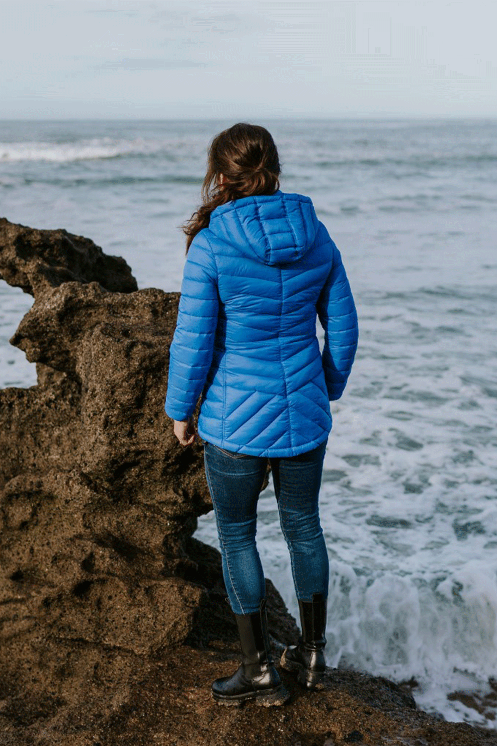 You asked and we have delivered! If you love the Mary-Claire Vest you will love the Cushla Jacket! The casual lightweight down jacket bound to be your new favourite winter daily essential. Like all MOKE packable down styles, it has a fantastic warmth to weight ratio, meaning you get all the warmth without the bulk. Wear on its own or underneath another jacket as an extra insulator for the coldest conditions. Featuring a tapered waist for extra shape and a flattering high low hem to cover your bum. An intricate quilt design gives me an extra edge. Complete with its own packable bag making it perfect for travel.