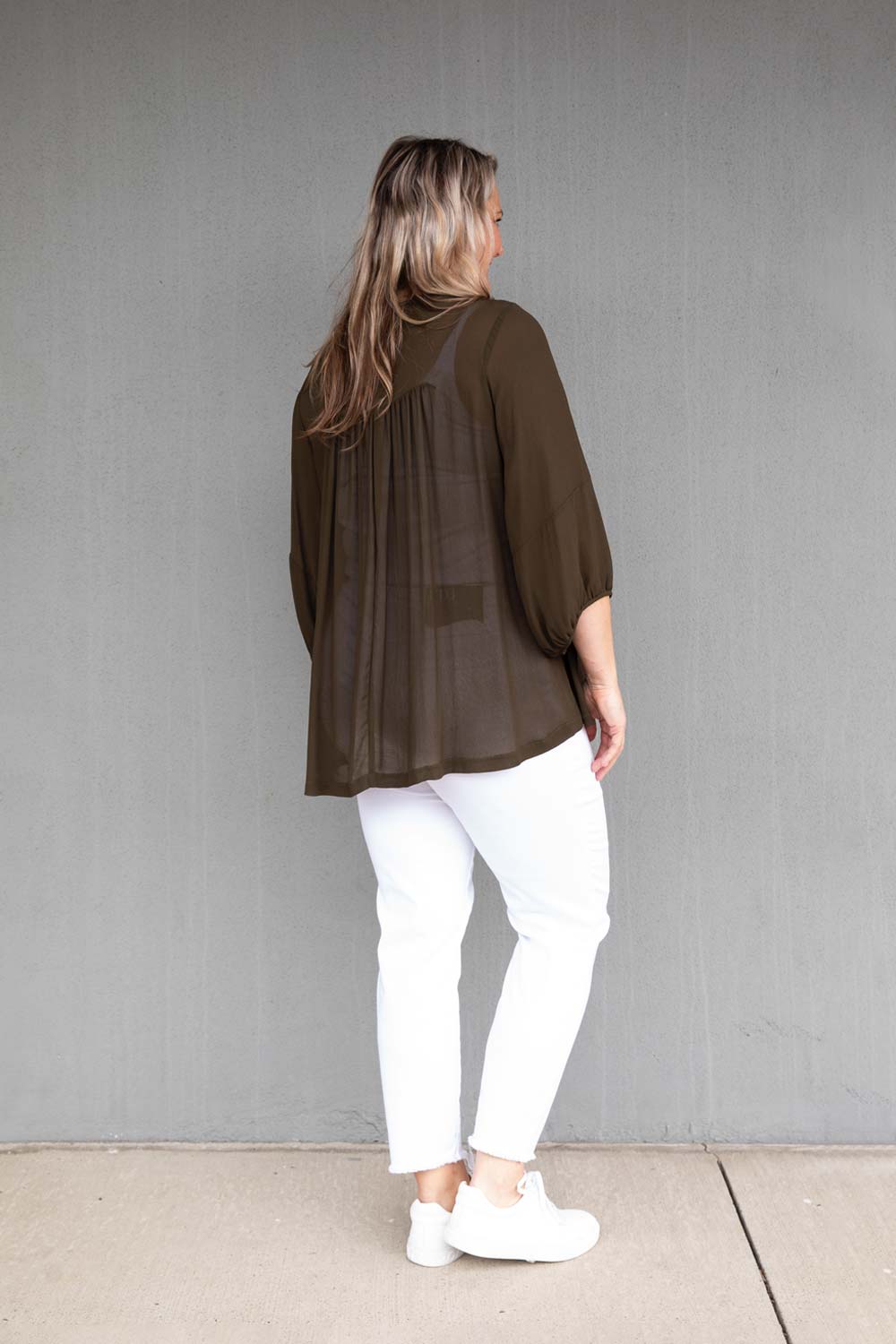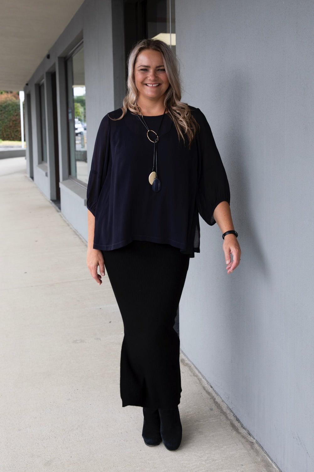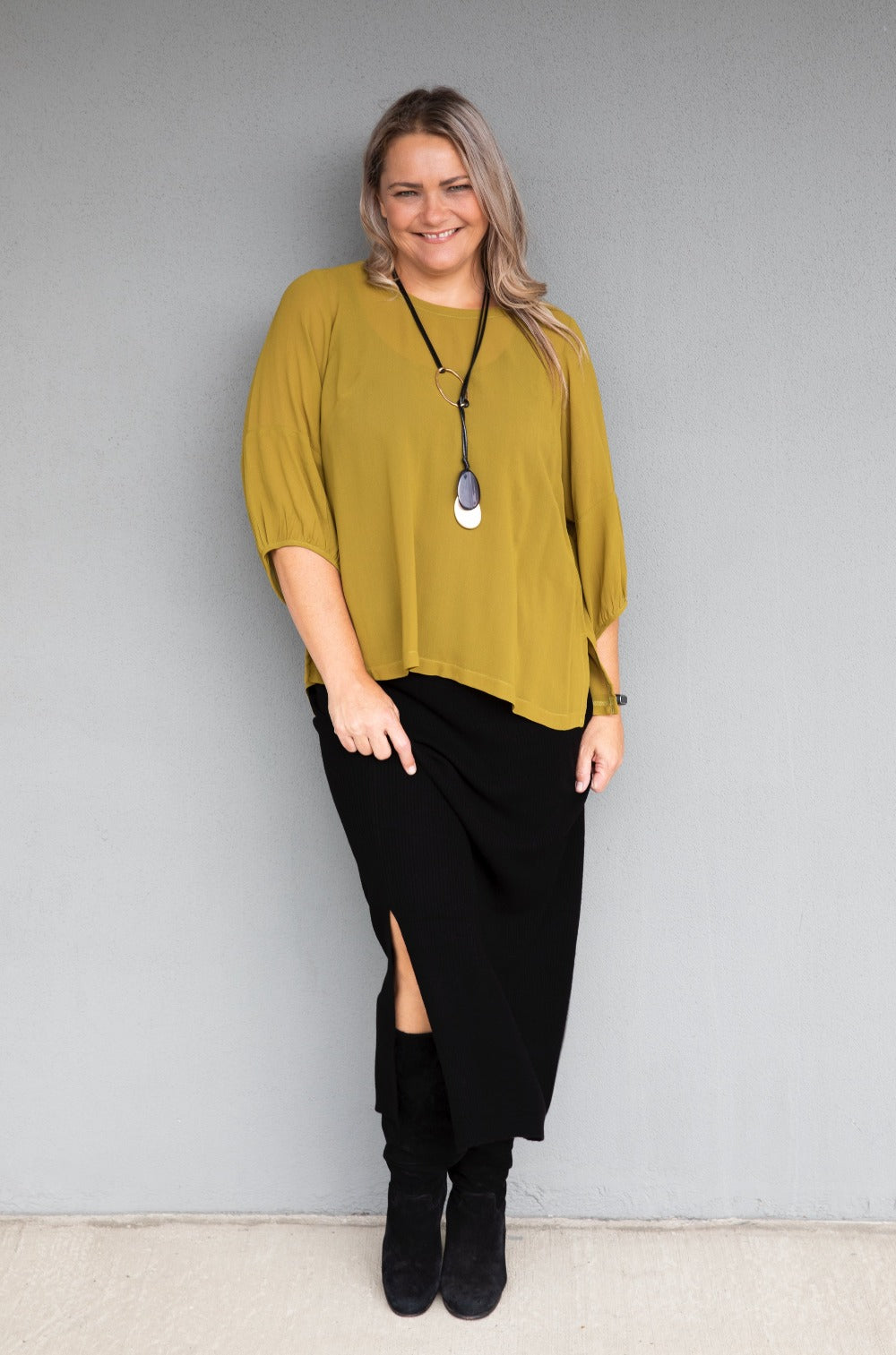Based off last seasons best selling style, Niovara’s Remix Top is a fun new interpretation. Created exclusively for Magazine and proudly made in New Zealand, this style is cut in a semi sheer viscose. Offered in very wearable colourways, this swing shaped style features a blouson sleeve, and pleated back yoke. Team with a wide leg pant or denim for the ultimate in off duty style.