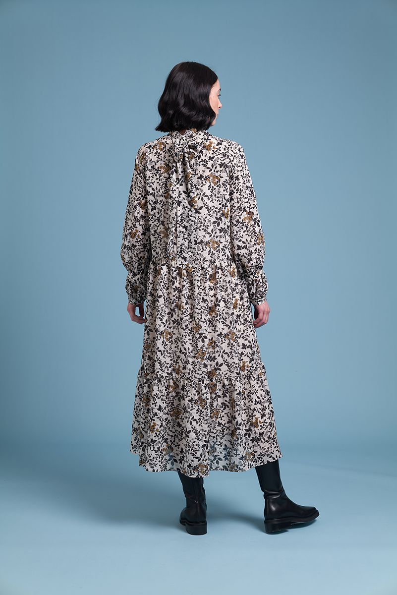 The Take A Bow Dress by Siren is crafted from a soft chiffon fabrication and comes with a nude slip underneath. The style features a high neckline which ties into a statement bow at the back. The dress is made up of several tiers and the sleeves on the dress have a ruched detailing on the cuff, doing up with a single self-covered button.